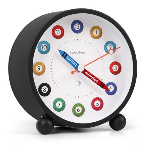 ABOUT SPACE Alarm Clock - Silent Analog Table Clock with Night Light - Black (Battery not included)