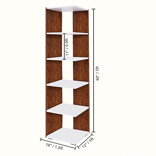 ABOUT SPACE Book Shelf - 5 Tier 5 ft Versatile Book Stand for Home Library, Office Modern Slim Open Display Rack Shelf Engineered Wood with Unique Design for Bedroom Living Room - Oak Red (1.5x1x5 ft)