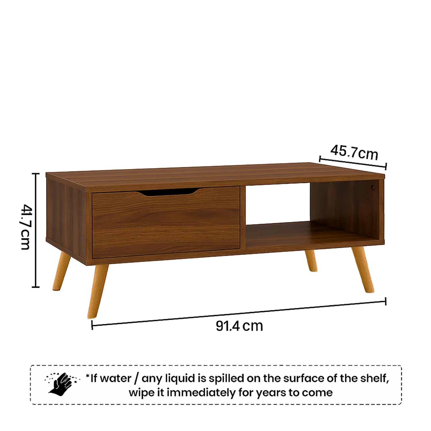 ABOUT SPACE Center Table - Space Saving Coffee Table for Living Room with Drawer & Storage Compartment Engineered Wood DIY Teapoy with Metal Legs for Home, Office (Walnut - L 91.5 x B 46 x H 46 cm)