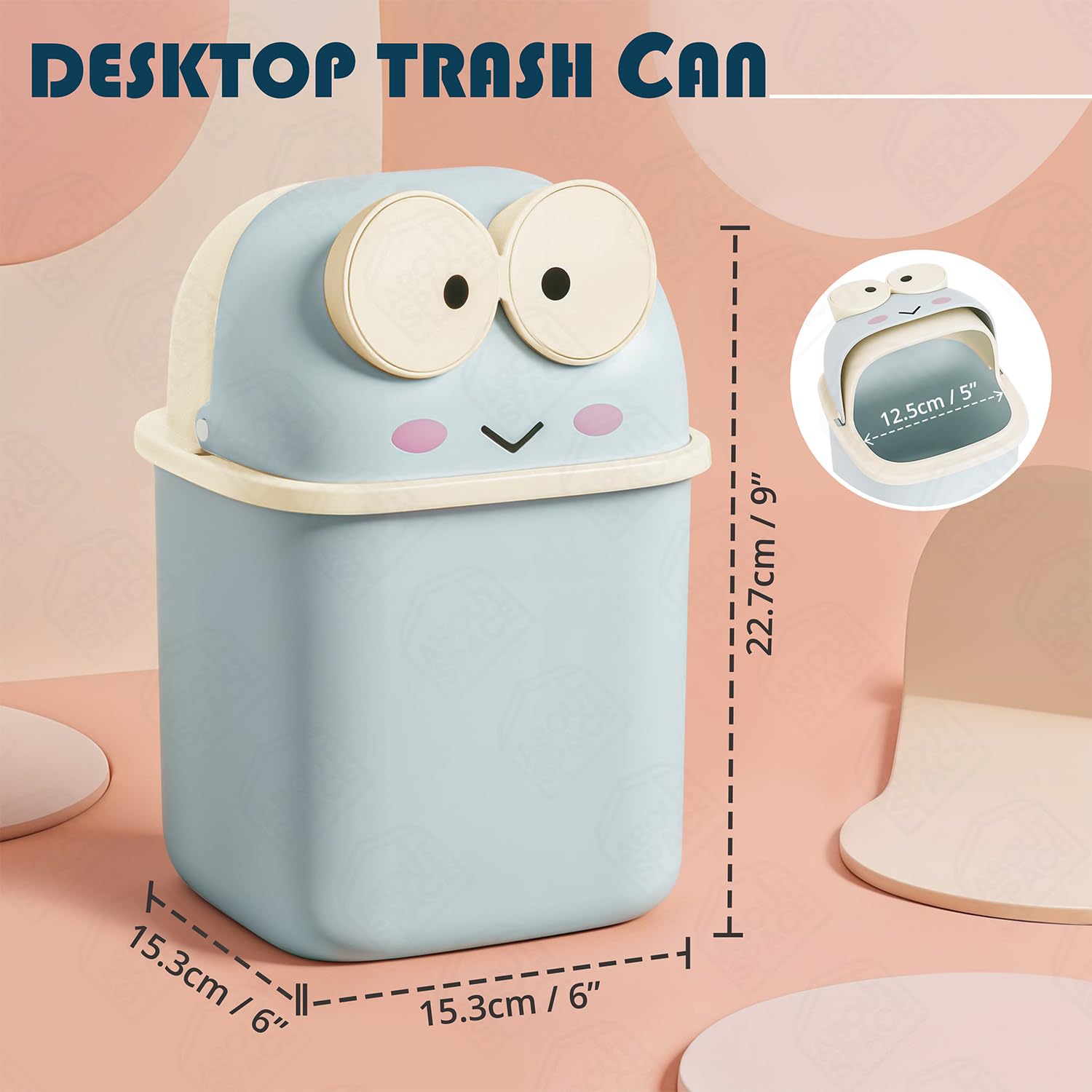 ABOUT SPACE Small Dustbin for Study Table - Mini Desktop Trash Can with Flip Lid - Garbage Bin for Office Bedroom Vanity - Big Eye Frog Shaped Small Size Table Dustbin (Blue - L15.5 x B15.5 x H 23 cm)