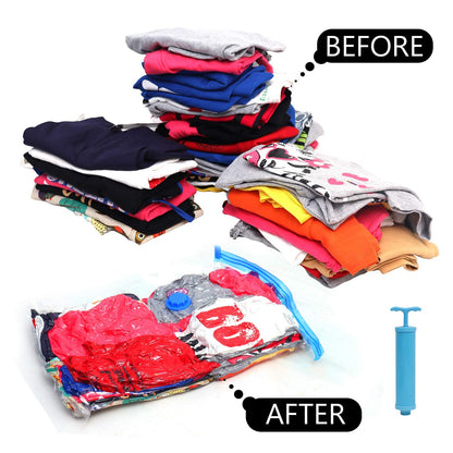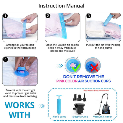 VACUUM BAGS for STORAGE: 4 space-saving vacuum storage bags with pump take every bit of air from the bags, shrink blankets and quilts to 80% and clothes and other goods to 60% saving space for more storage. As every season requires swapping clothes out of the wardrobe, vacuuming helps create 3X storage space in the wardrobe for various seasons