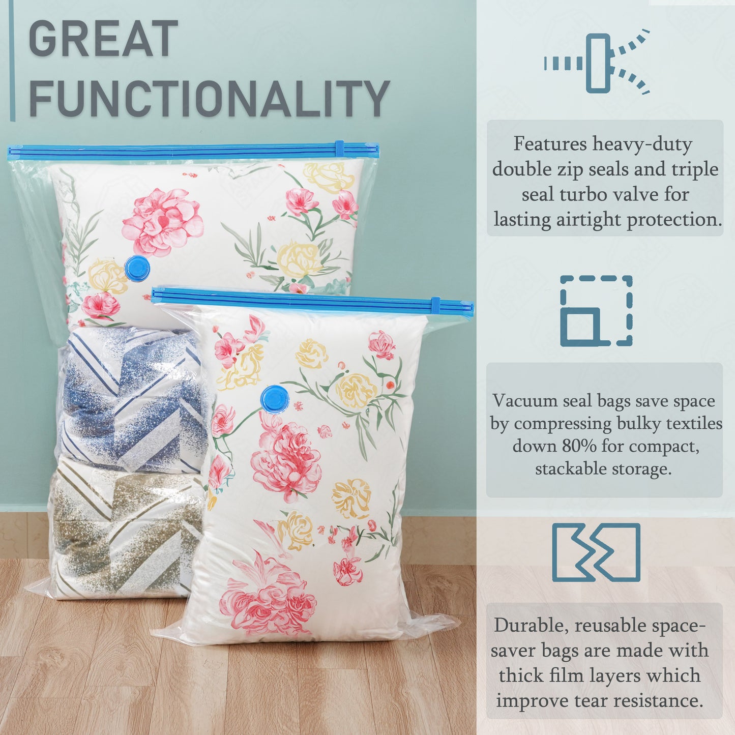 ABOUT SPACE Vacuum Bags for Clothes with Pump - (6 Pcs) Reusable Vacuum Storage Bags