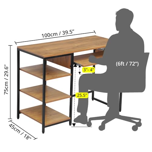 PERFECT & STABLE: The engineered wood gaming table / study table is perfect and stable, with super sturdy heavy-duty black metal desk legs and spacious tabletop. Table with 3 tier storage shelves measures L 100 x B 45 x H 75 cm