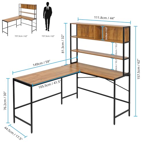 ABOUT SPACE 3 Tier Computer Table with Unique L-shaped Modern Desktop [Wood Color - L 113.5 / 151.7 x B 45 x H 157 cm]