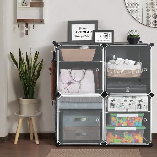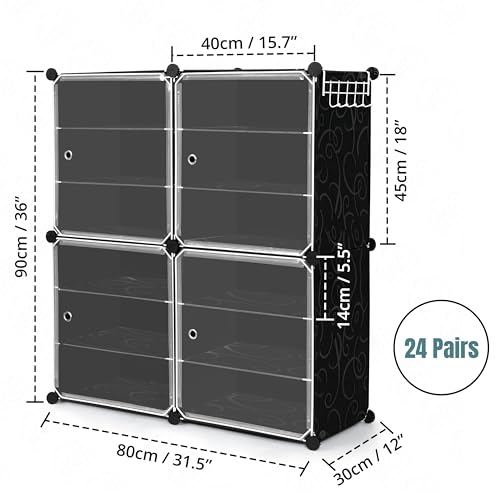 ABOUT SPACE Shoe Rack Organizer - 12 Layer Shoe Stand With Hanger & Door For Home - DIY 24 Pair Portable, Expandable 4 Cube Shoe Stand For Boots, Heels, Slipper Stand For Women, Men, Outdoor (Black)
