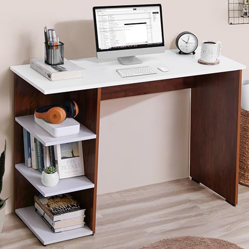 ABOUT SPACE Study Table with 3 Tier Bottom Storage [Oak Red & White-L103 x B40 x H76 cm]