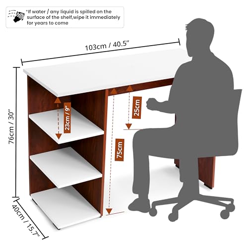 PERFECT & STABLE:The engineered wood desktop table / wooden study table for students is perfect and stable, with bottom storage and spacious tabletop. The study table for home with book shelf measures L 103 x B 40 x H 76 cm.